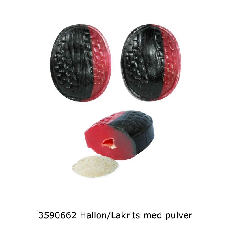 3590662 Bringebær-/lakriskarameller med saltpulver